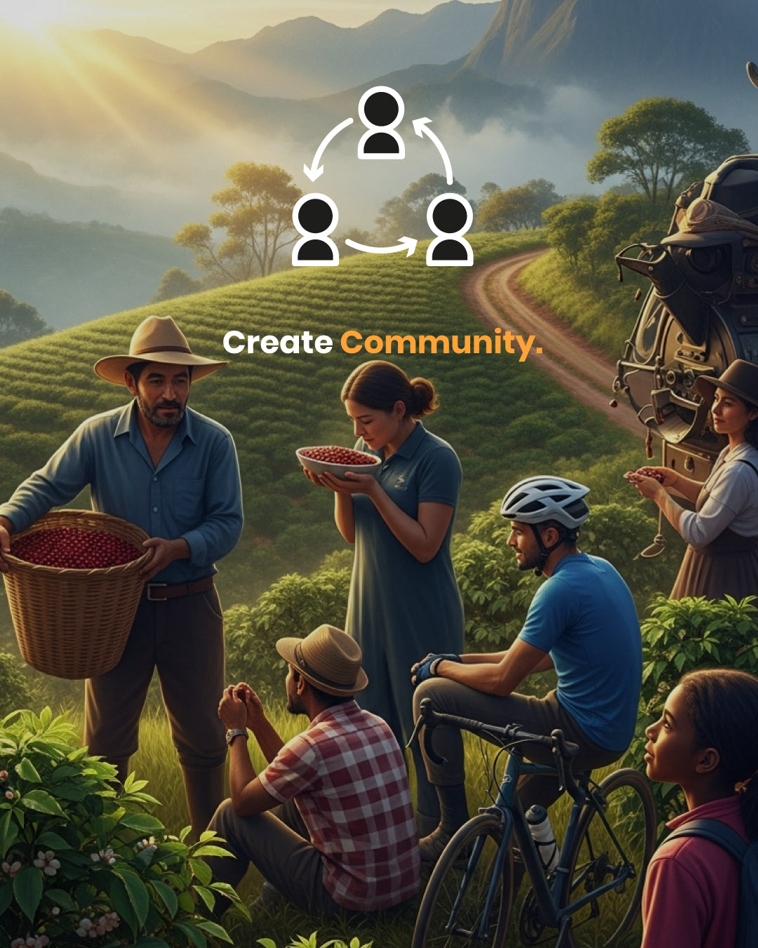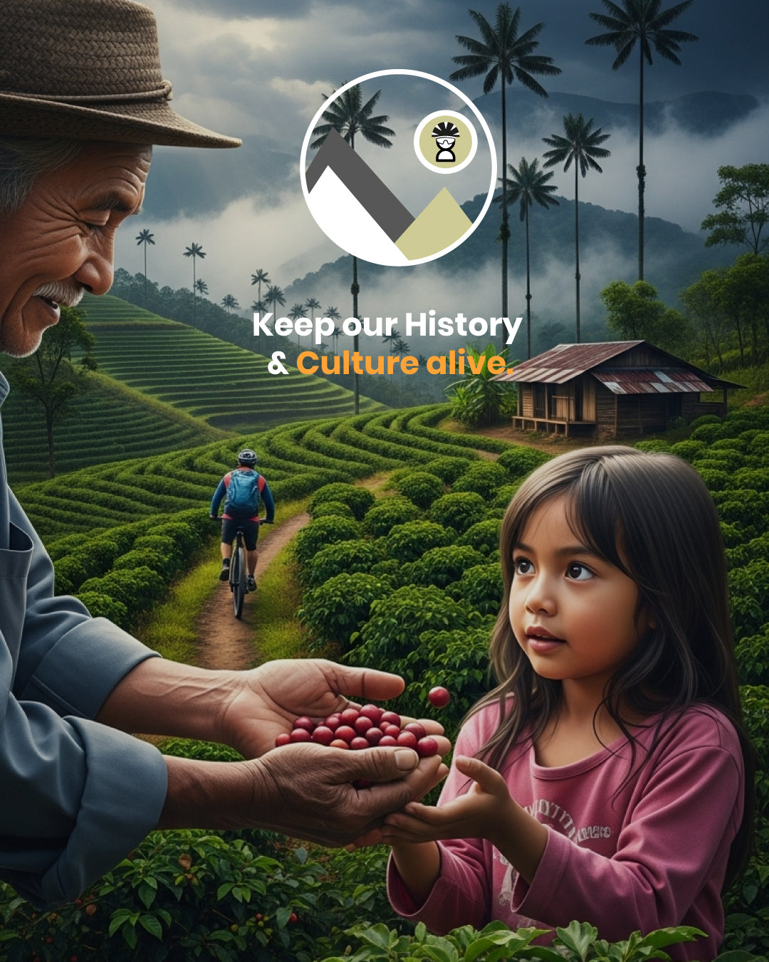 Mítico brings the global cycling community closer to all processes, from coffee and cycling development to its impact on the environment (Colombian families producing specialty coffee and cycling programs for young people).