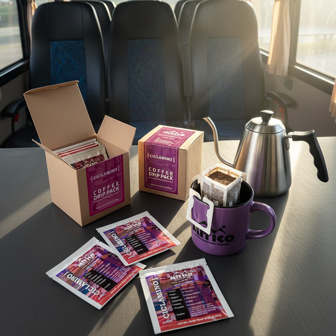 Pack x 10 Ciclamino drips, a Castillo Natural coffee with a floral fragrance, light peach, caramel flavor, milk chocolate, cocoa, medium-low citric acidity, stable creamy body with a long and aromatic finish. Enjoy a true gem from the mountains of Colombia in every drip.