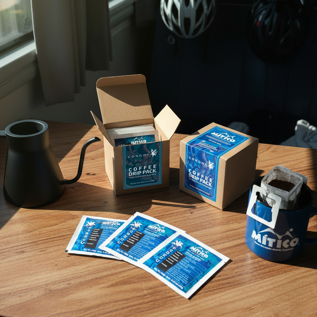 Pack of 10 Condor Mítico coffee drips. Delight your senses with each drip of Ethiopian Landrace coffee and its floral fragrance, enriched with hints of panela and cherry. With a medium citric acidity, a velvety body, and a sweet, lingering finish.