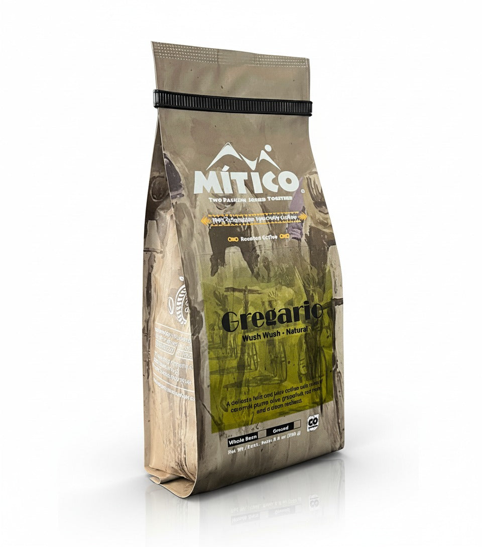 Delicate, fruity and juicy Wush Wush , with notes of caramel, plums, olives, grapefruit, red berries, and a clean finish that will sharpen your senses. Experience the charm of Mítico Gregario, a true gem from the heart of Huila, Colombia.